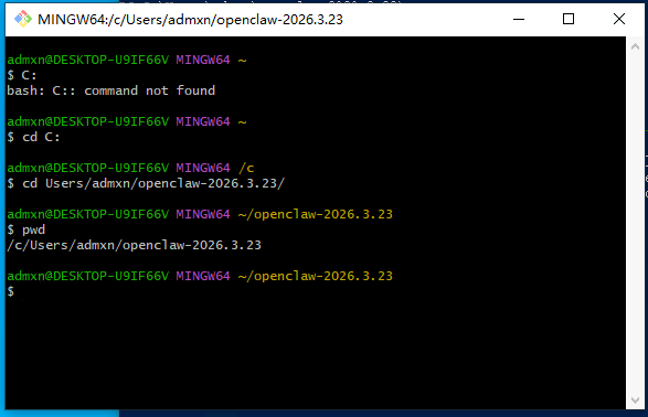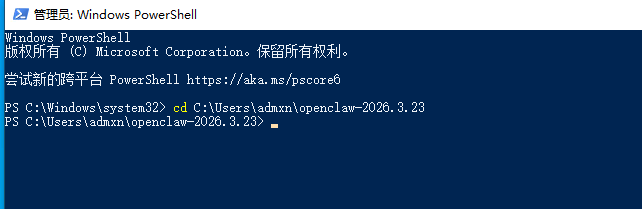 // 管理员权限 cd C:\Users\admxn\openclaw-2026.3.23
